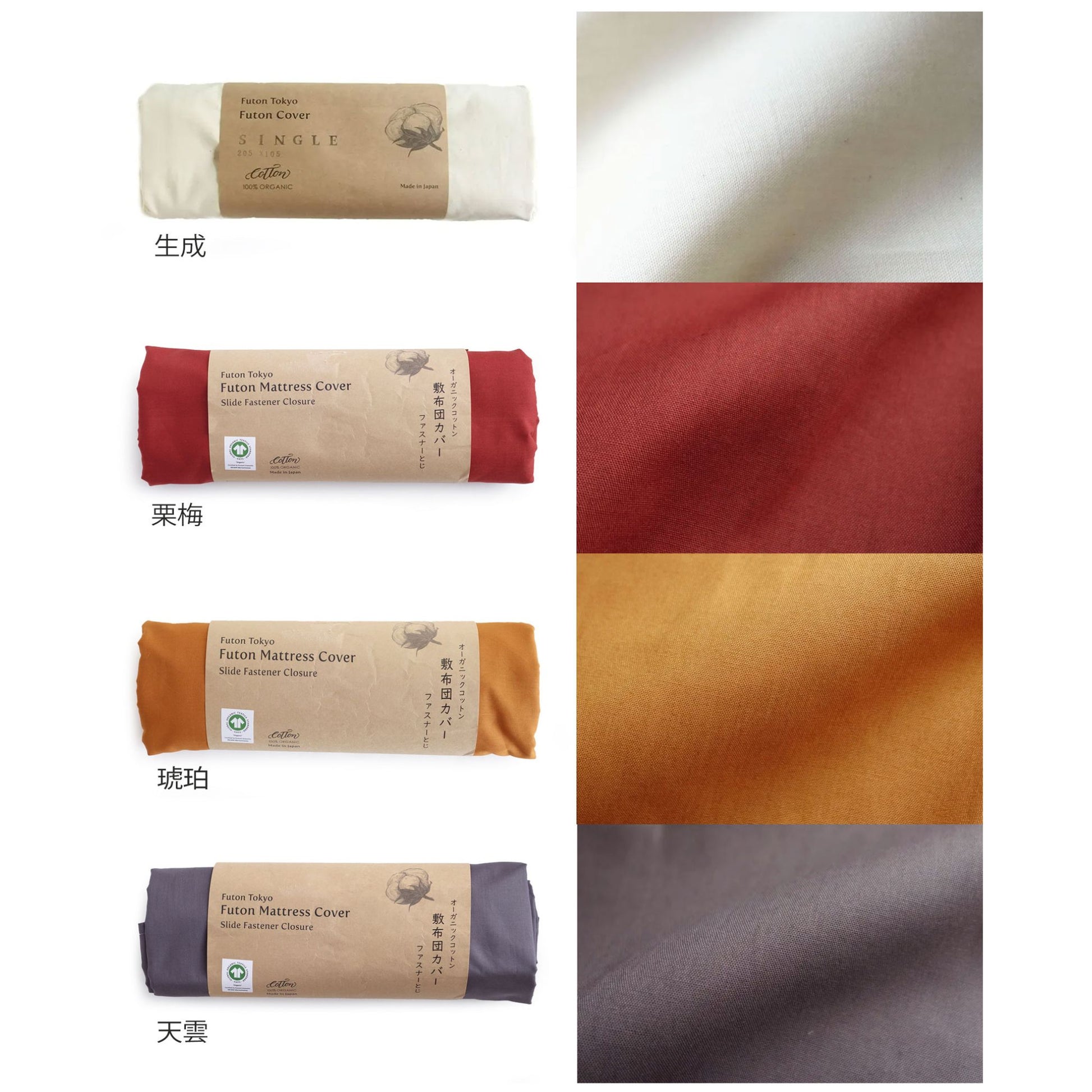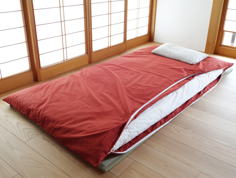 オーガニックコットン100%の掛け布団・敷布団カバー(ファスナーとじ)。