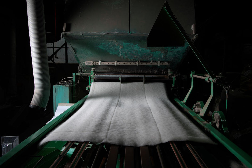 現在、日本国内で製綿機を保有し、自ら綿を加工できる工場は極めて少なく、布団製造のメーカーでありながら製綿設備を持つことは大きな強みです。