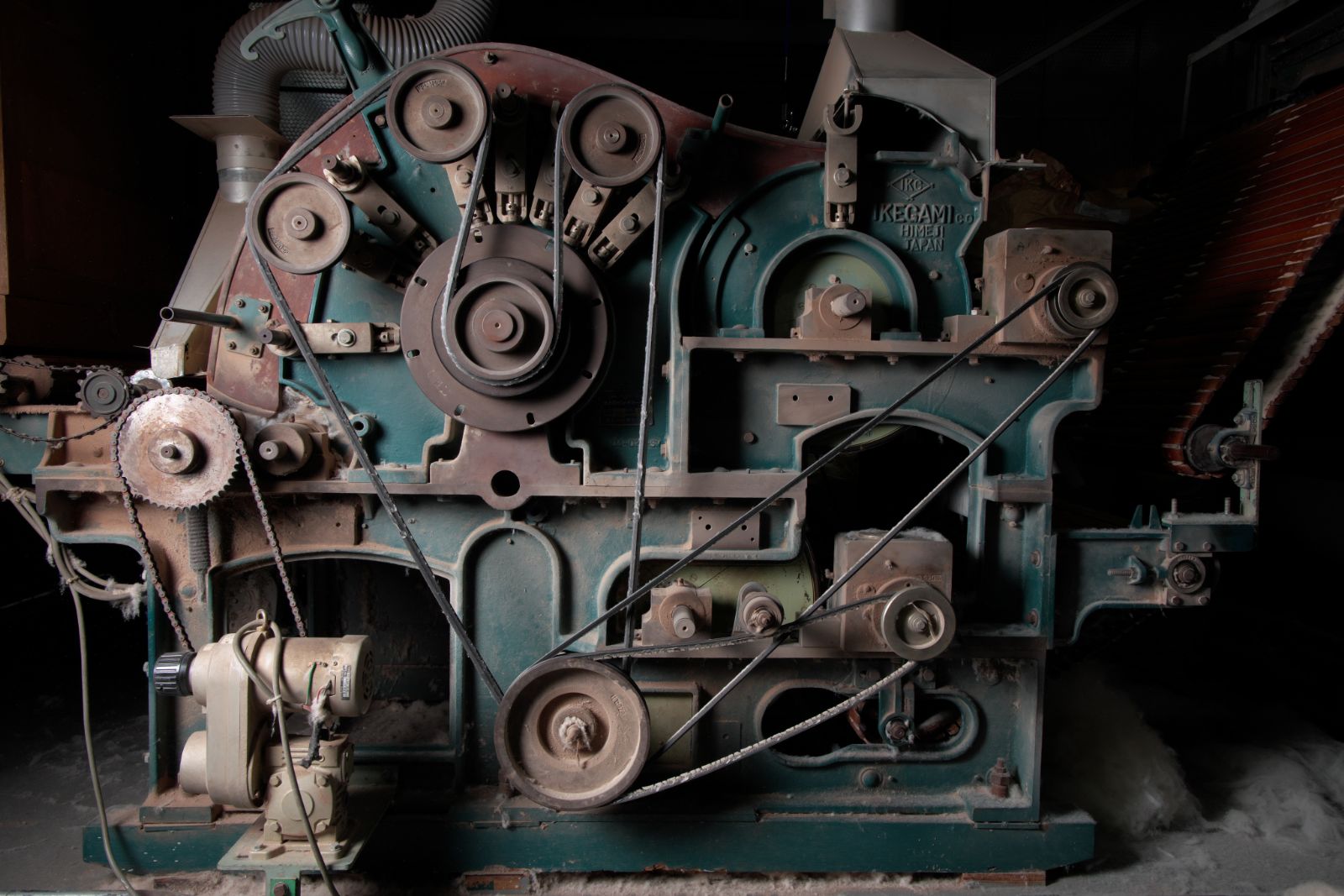 • ほぐした綿は、カード機(カーディング機)に送られます。