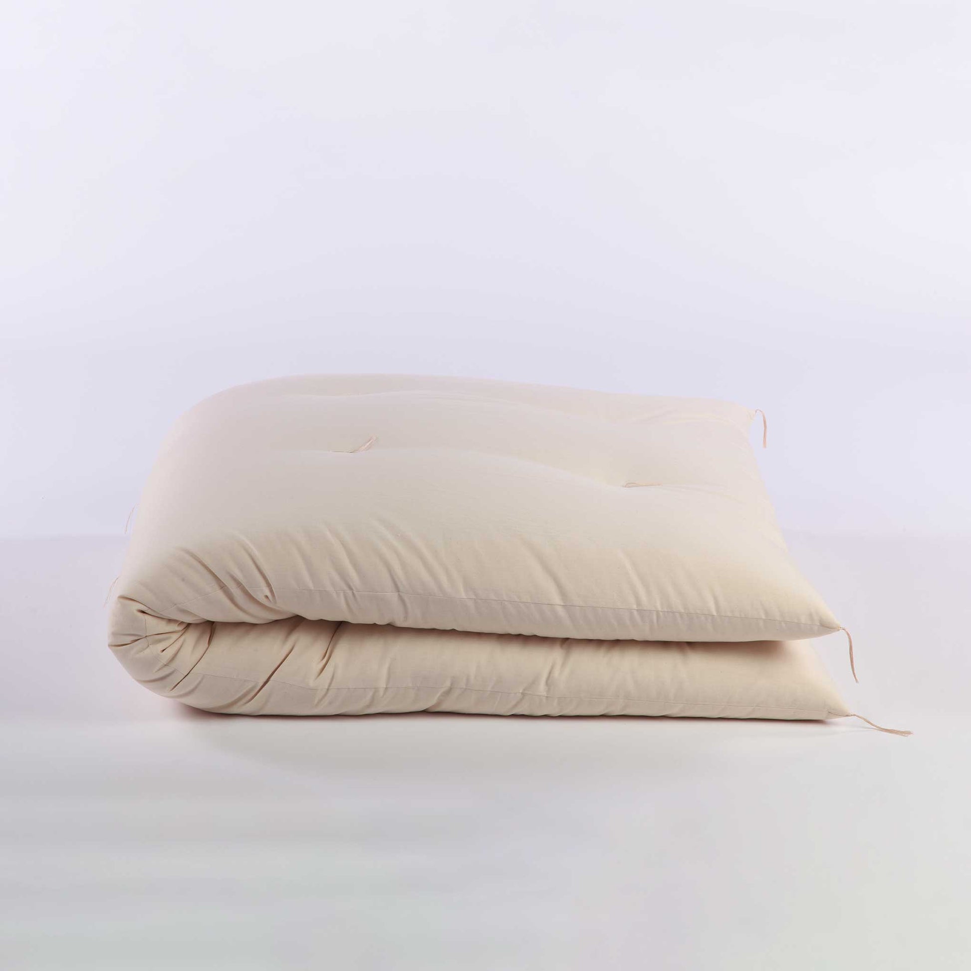 農薬や化学肥料を使わずに育てられたオーガニックコットンを使用した、肌にも環境にもやさしい敷布団です。ふんわりとした綿の中わたが、体をしっかりと支えながらもやさしく包み込み、心地よい眠りへと誘います。