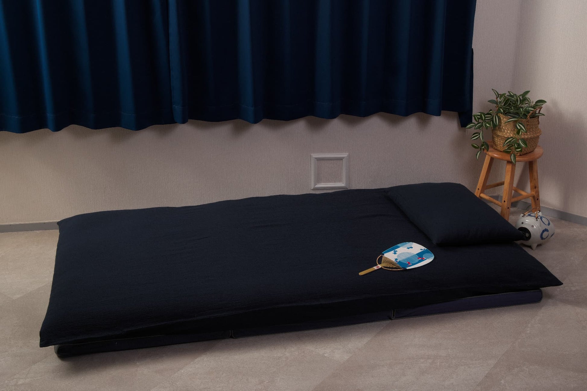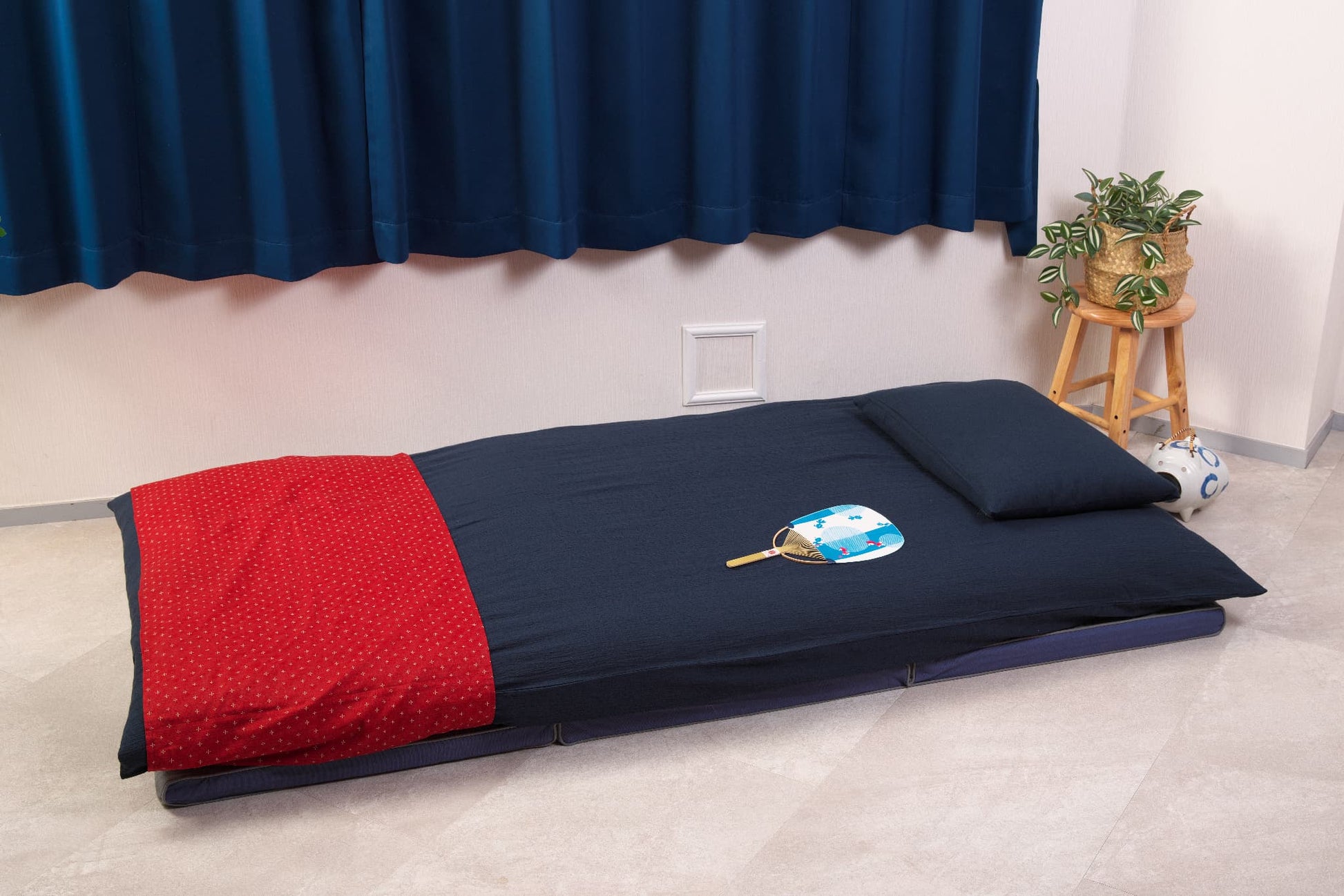 静岡・遠州の伝統的な工法で織られた生地を使った、当店オリジナルの敷布団カバーです。